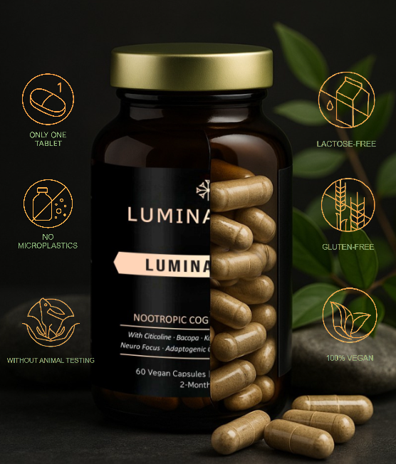 Every capsule of Lumina Brain is engineered with precision — combining neuroscience, nutrition, and biochemistry to enhance mental performance without overstimulation. Developed in France and tested by Eurofins, our formula represents the intersection of purity, performance, and calm clarity.